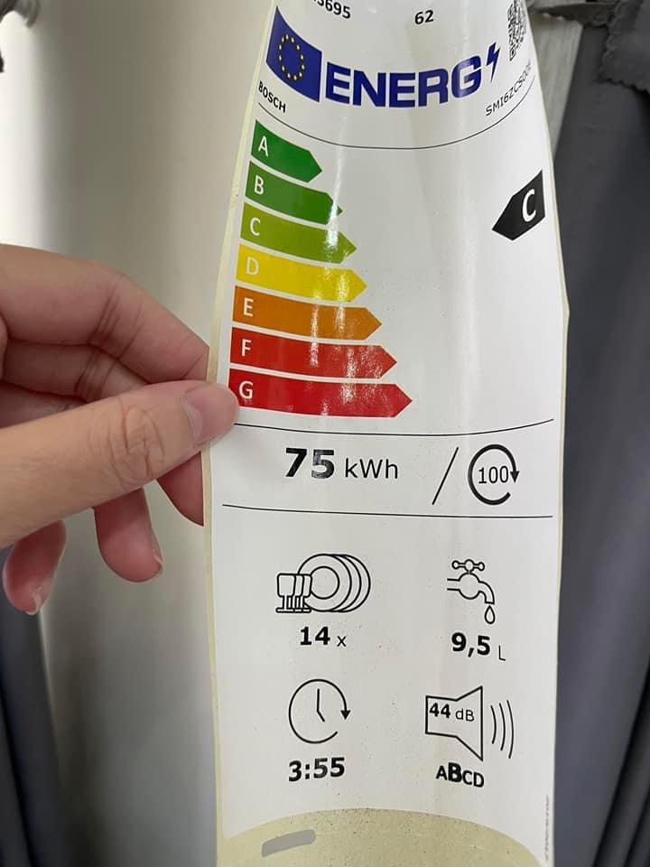 Đây là nhãn năng lượng để xác định máy có tốn điện, nước hay không. Anh chị em bạn bè ai giỏi tính được chỉ số thì em chia sẻ cái tag năng lượng này nha. Riêng em thì cảm nhận cá nhân là tiền điện và tiền nước sau 1 tháng sử dụng không tăng đáng kể. Còn độ ồn thì rất ổn áp, chả nghe cái gì, è è è xíu thôi à, còn nhỏ hơn máy giặt